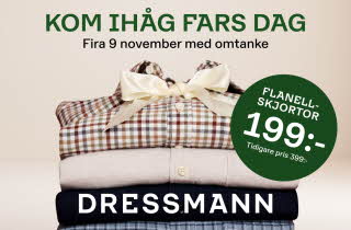 Dressmann är Nordens största modekedja inom herrkläder och har som ambition att täcka det totala klädbehovet för män i alla åldrar. Dressmann erbjuder ett fullt sortiment med allt inom bas- och fritidskläder, konfektion och i storlekarna upp till 3XL.