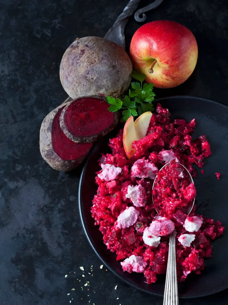 Rödbets-snittar med ädelost
